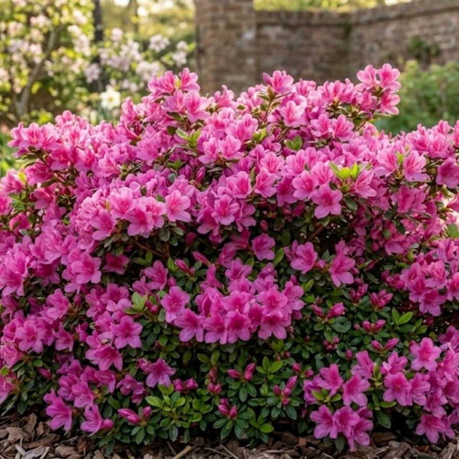 Azalia japońska Canzonetta to efektowna, zimozielona krzewinka ozdobna, która zachwyca obfitym kwitnieniem i eleganckim pokrojem. Wiosną (zwykle w maju) pokrywa się licznymi, intensywnie różowo-czerwonymi kwiatami, które tworzą barwną, gęstą „poduszkę” nad ciemnozielonymi liśćmi. Dzięki temu jest jedną z bardziej dekoracyjnych odmian azalii japońskich. Roślina rośnie powoli i tworzy niski, zwarty krzew o poduszkowatym kształcie. Świetnie sprawdza się w ogrodach japońskich, wrzosowiskowych, na rabatach oraz w nasadzeniach grupowych. Jest idealna do kompozycji z innymi roślinami kwaśnolubnymi.