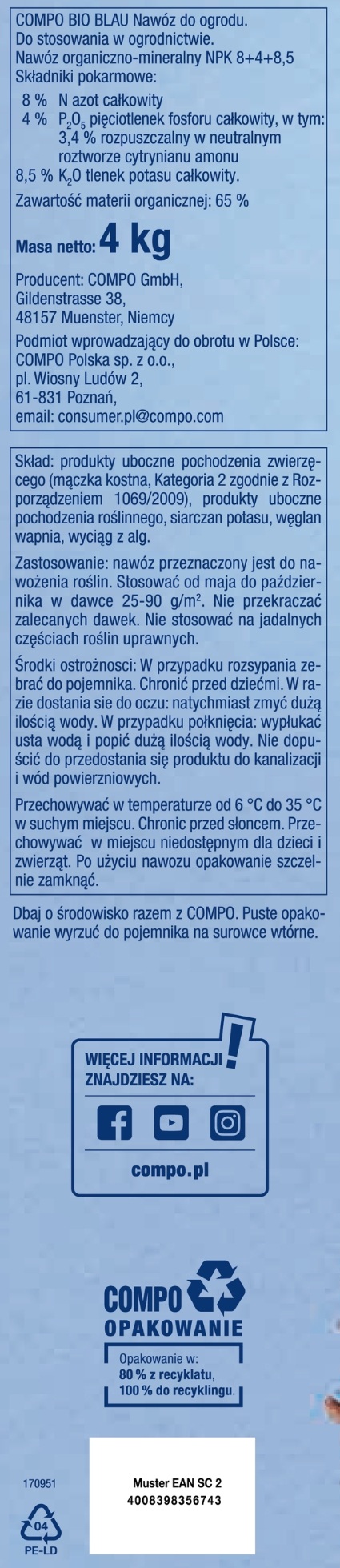 BIO BLAU Nawóz do ogrodu 4 kg Compo