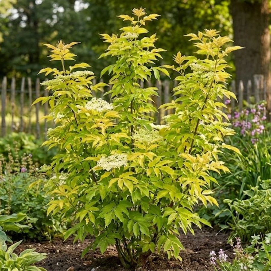 Bez Czarny Golden Tower to efektowna, kolumnowa odmiana o zwartym, wąskim pokroju. Jej liście mają intensywny złocisty odcień, który tworzy piękny kontrast z innymi roślinami w ogrodzie. Wiosną krzew obsypuje się drobnymi, pachnącymi kwiatami w odcieniu jasno fioletowym, przyciągającymi pszczoły i motyle. Dzięki złocistym liściom i kolumnowej sylwetce, Golden Tower wprowadza do ogrodu elegancję, jasność i strukturalny akcent, zajmując przy tym niewiele miejsca.