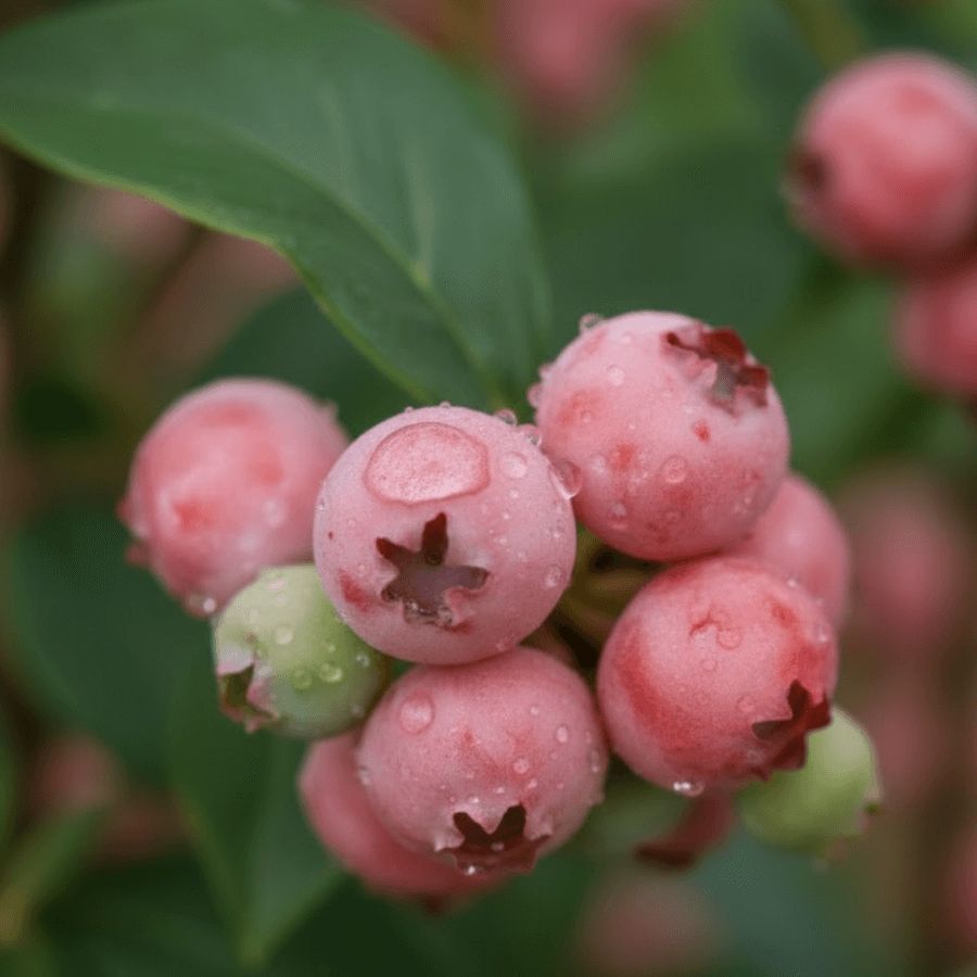 Borówka Amerykańska Pink Lemonade to niezwykle efektowna odmiana borówki amerykańskiej, wyróżniająca się różowymi owocami i ozdobnym ulistnieniem. Jagody dojrzewają od słodko - różowego do jasno czerwono - różowego koloru, a ich smak jest słodki z delikatną kwaskowatością, bardzo aromatyczny. Krzew rośnie zwartym pokrojem, kwitnie wiosną białymi kwiatami, a jesienią liście przybierają atrakcyjne odcienie czerwieni i fioletu. Owoce dojrzewają w lipcu i sierpniu, idealne do jedzenia na świeżo do deserów oraz przetworów.