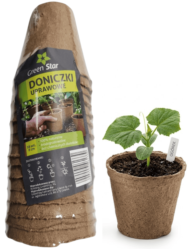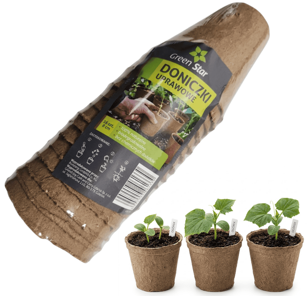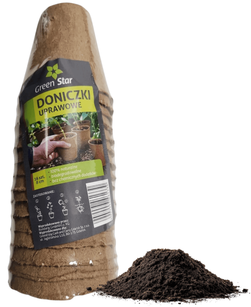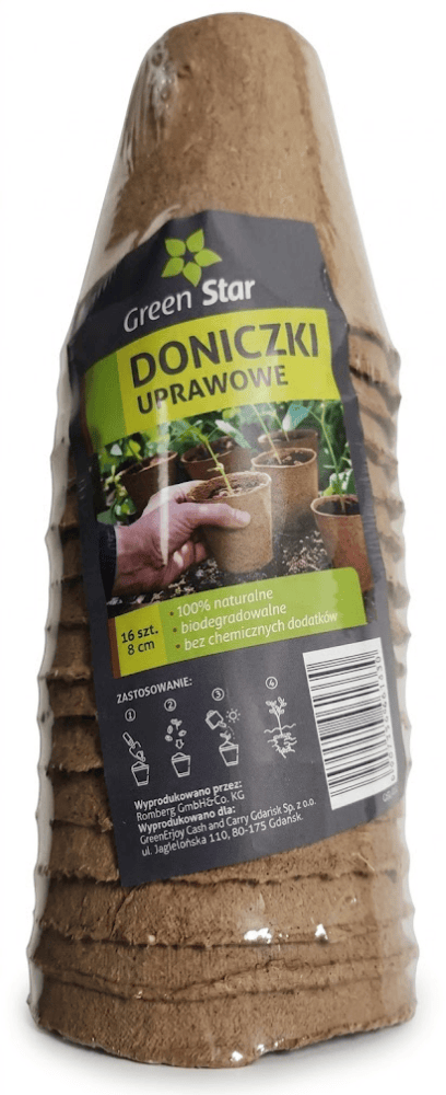 Doniczki z włókna kokosowego okrągłe o średnicy 8 cm marki Green Star to idealne rozwiązanie na samodzielne przygotowywanie rozsad. Produkt jest w pełni biodegradowalny, dlatego nie musisz martwić się koniecznością przesadzania sadzonki – gdy osiągnie ona odpowiedni rozmiar, zakop ją wraz z doniczką na grządce. Średnica 8 cm najlepiej sprawdzi się do przygotowywania sadzonek pomidorów, ogórków, roślin dyniowatych, a także porów czy sałat.