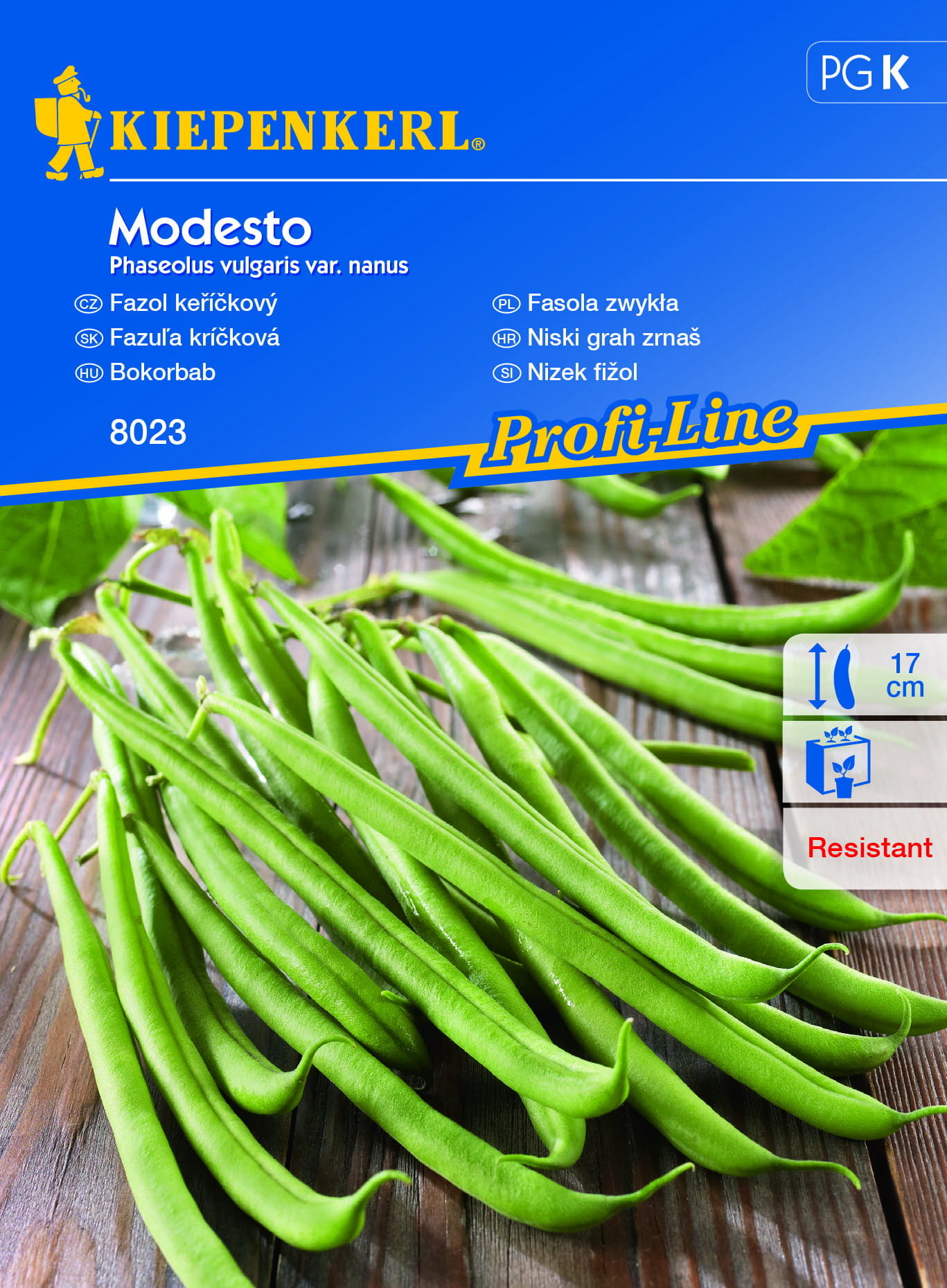 Fasola 'Modesto' to wczesna odmiana karłowa, która wyróżnia się delikatnymi, bezwłóknistymi strąkami oraz obfitym plonowaniem. Roślina jest wyjątkowo stabilna, a w sprzyjających warunkach osiąga pełną dojrzałość do zbiorów już po około 11 tygodniach.