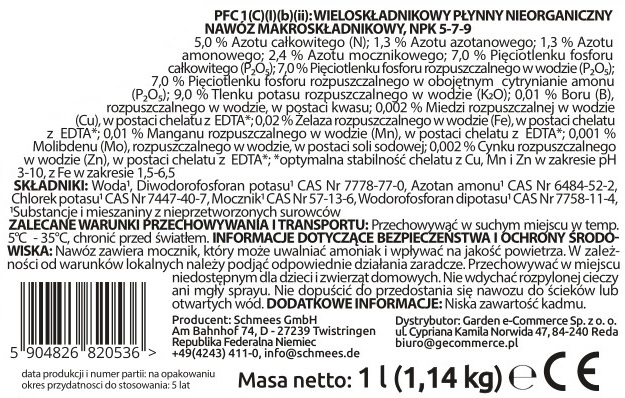 - 10 ml nawozu na 1 l wody od marca do października co 2 tygodnie. Przed użyciem należy wstrząsnąć opakowaniem.