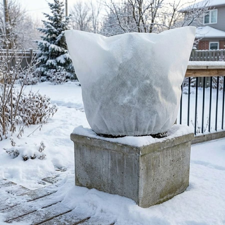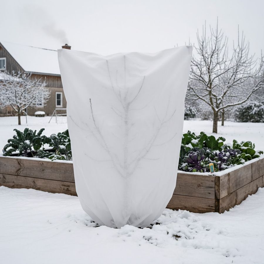 Ochronny kaptur z agrowłókniny przeznaczony jest do osłaniania roślin zimujących w gruncie.