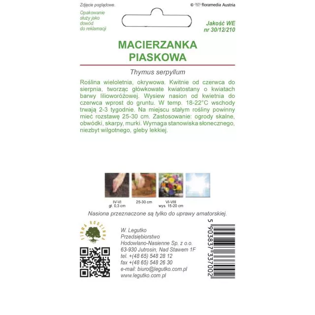 Macierzanka piaskowa – różowa – 0,1 g Legutko