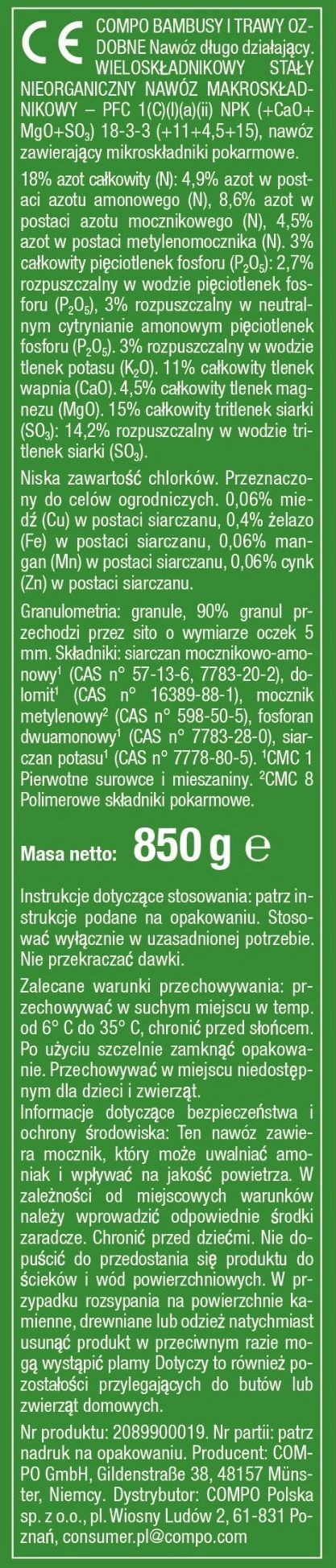 Nawóz długo działający do bambusów i traw 850 g Compo