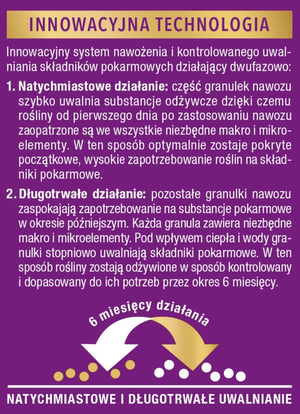 - dodatek mikroskładników pokarmowych oraz magnezu zapewnia piękne i dobrze wybarwione kwiaty