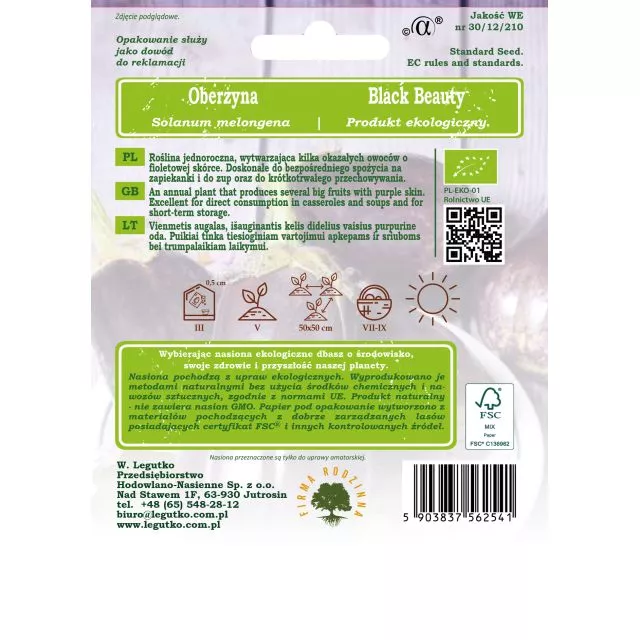 Oberżyna Black Beauty (Solanum melongena) to roślina jednoroczna, charakteryzująca się wydłużonymi, pękatymi owocami o błyszczącej, ciemnofioletowej skórce. Wnętrze bakłażanów jest jasne i zawiera drobne, jadalne pestki. Ze względu na duże wymagania cieplne oberżyna powinna być uprawiana pod osłonami.