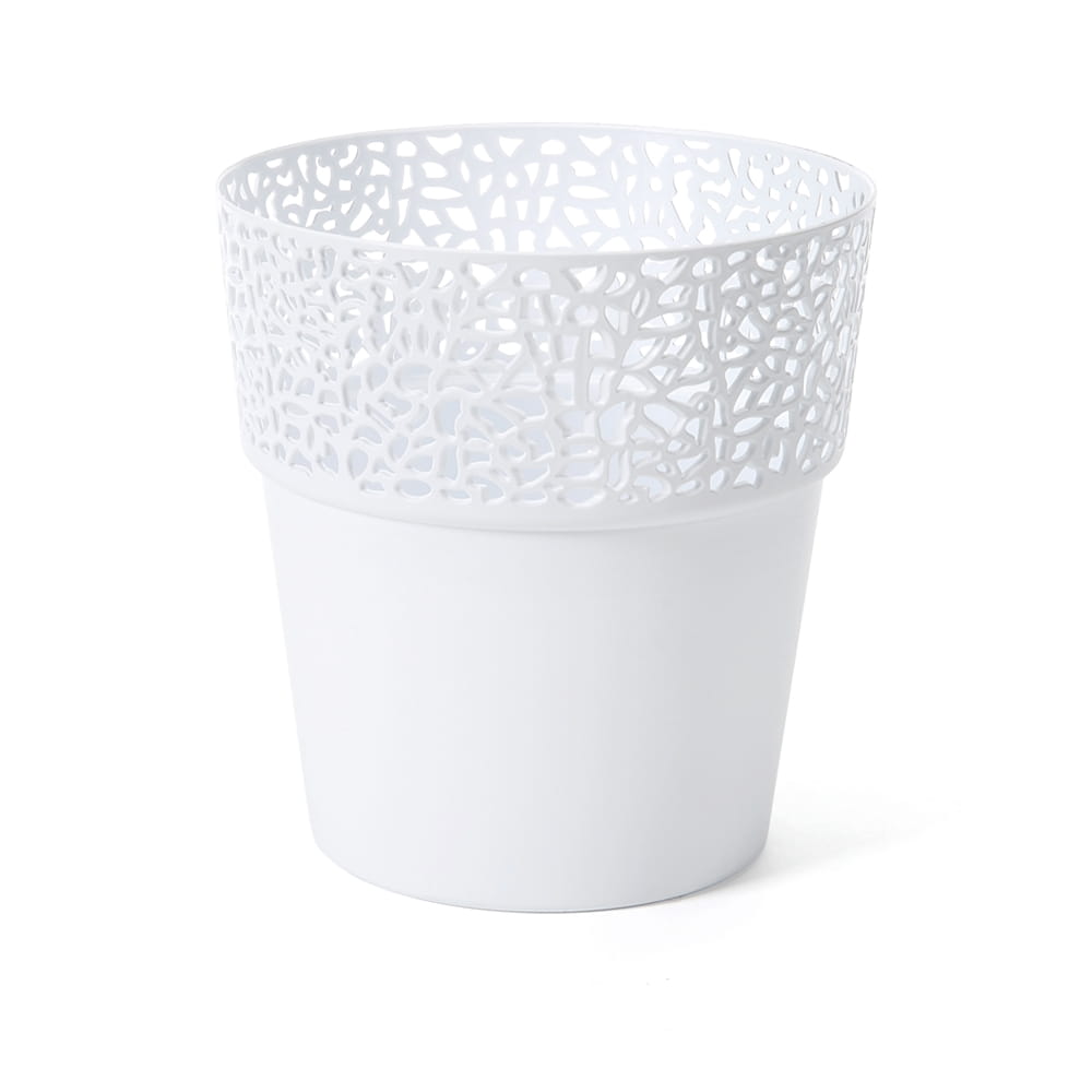 Model Rosa to osłonka o delikatnym, ozdobnym wyglądzie i satynowym wykończeniu. Rant zdobiony jest dekoracyjnym ażurowym wzorem. Doskonale będzie się nadawała do ozdobnych roślin domowych, czy ziół. Można również ją wykorzystać jako dekoracyjny pojemnik na drobiazgi.
