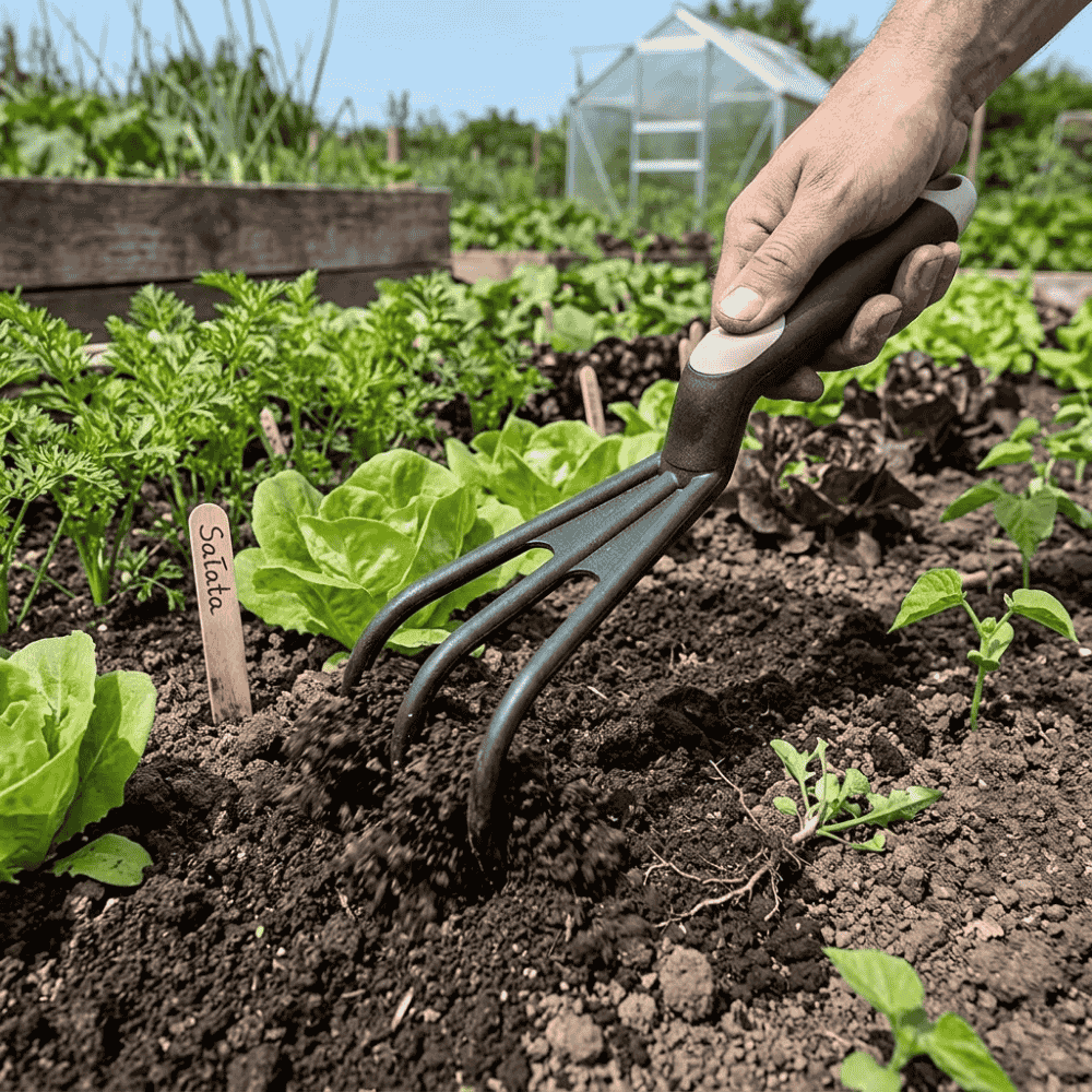 Pazurki ogrodnicze Small Garden Tool – Green Star to niezbędne narzędzie w każdym ogrodzie. Ułatwiają utrzymanie porządku na grządkach, rabatach czy wokół drzewo i krzewów owocowych. Produkt wykonany z elastycznego tworzywa delikatnie wzrusza wierzchnią warstwę gleby, przez co ułatwia usunięcie pojawiających się chwastów. Świetnie sprawdzi się również przy nawożeniu, ułatwiając wymieszanie wierzchniej warstwy ściółki z nawozami granulowanymi.