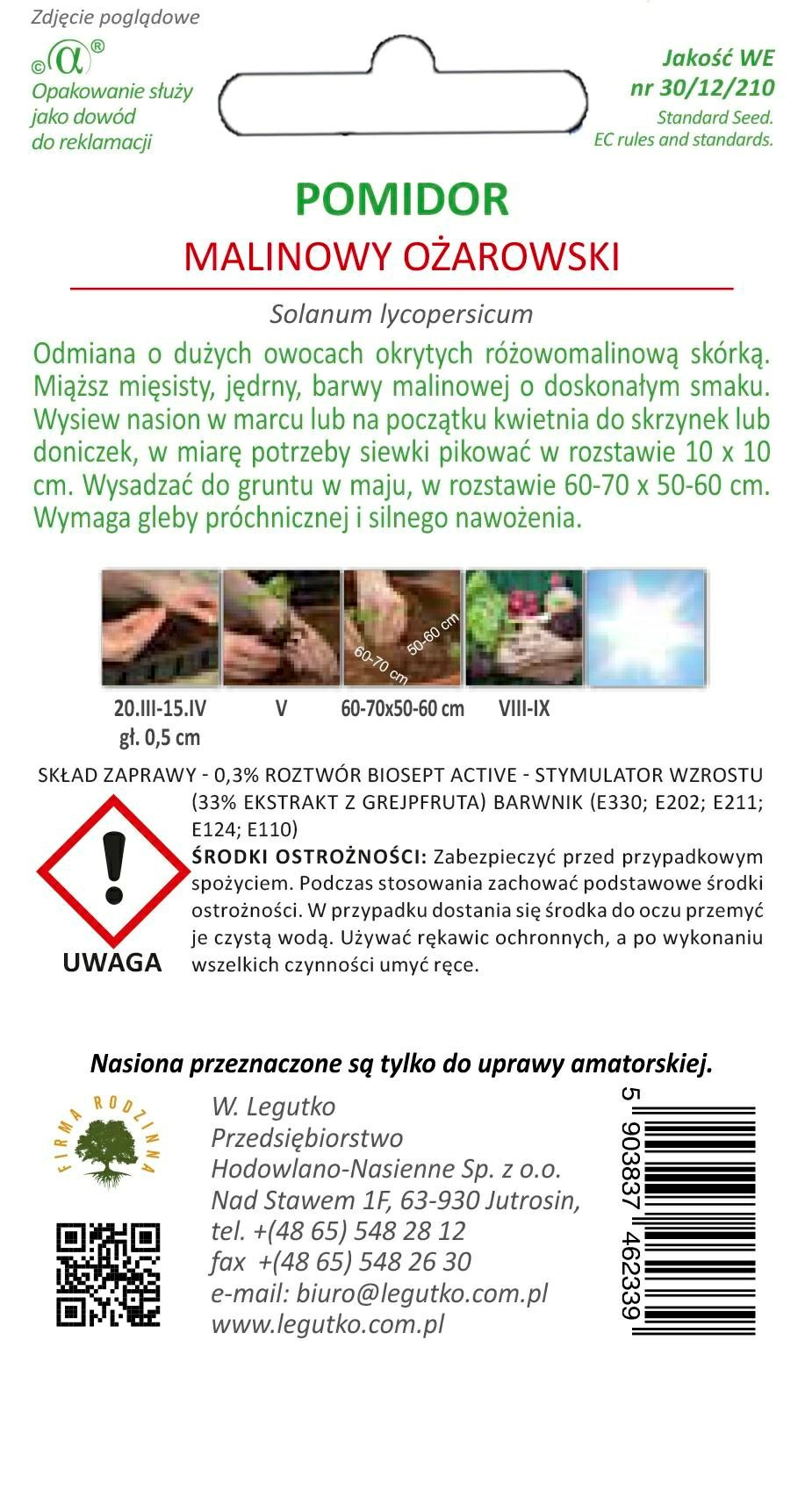 Pomidor gruntowy tyczny Malinowy Ożarowski 0,5 g Legutko