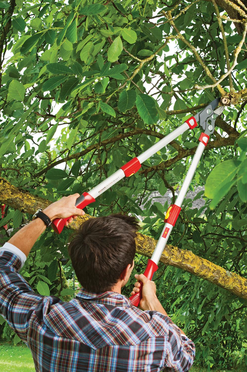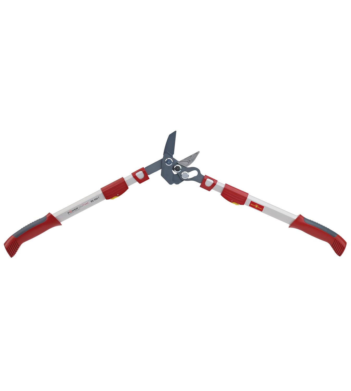 Dwuręczny sekator kowadełkowy Premium Plus RS 900 T to idealne narzędzie do cięcia twardych i martwych gałęzi o średnicy do 50 mm. Ostrza narzędzia pokryte są powłoką antyadhezyjną chroniącą przed pokryciem ostrzy klejącym sokiem drzew, dzięki czemu każde cięcie przychodzi lekko i sprawnie. Dzięki nowemu rozwiązaniu zastosowaniu w głowicy tnącej uzyskaliśmy 4-krotnie lepsze przełożenie mocy niż w zwykłych sekatorach. Ergonomiczny, anodowany uchwyt z teleskopową regulacją długości zakończony jest wygodnymi rączkami pokrytymi tworzywem. Gumowe ograniczniki wewnątrz uchwytu chronią dłonie użytkownika przed udeżeniem oraz asystują w czasie pracy zapewniając maksymalny komfort. Sekatory z serii POWER CUT zbudowane są z wielu wymiennych elementów, dzięki czemu są niezwykle proste w utrzymaniu. Długość całkowita sekatora regulowana jest w zakresie 650-900 mm.