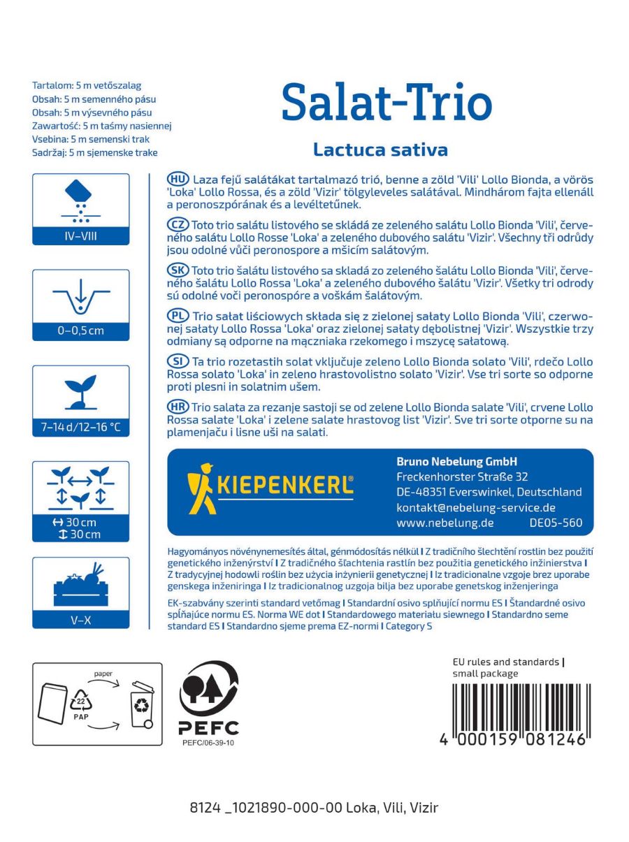 Trio sałat liściowych "Loka, Vili, Vizir" na taśmie nasiona - Kiepenkerl