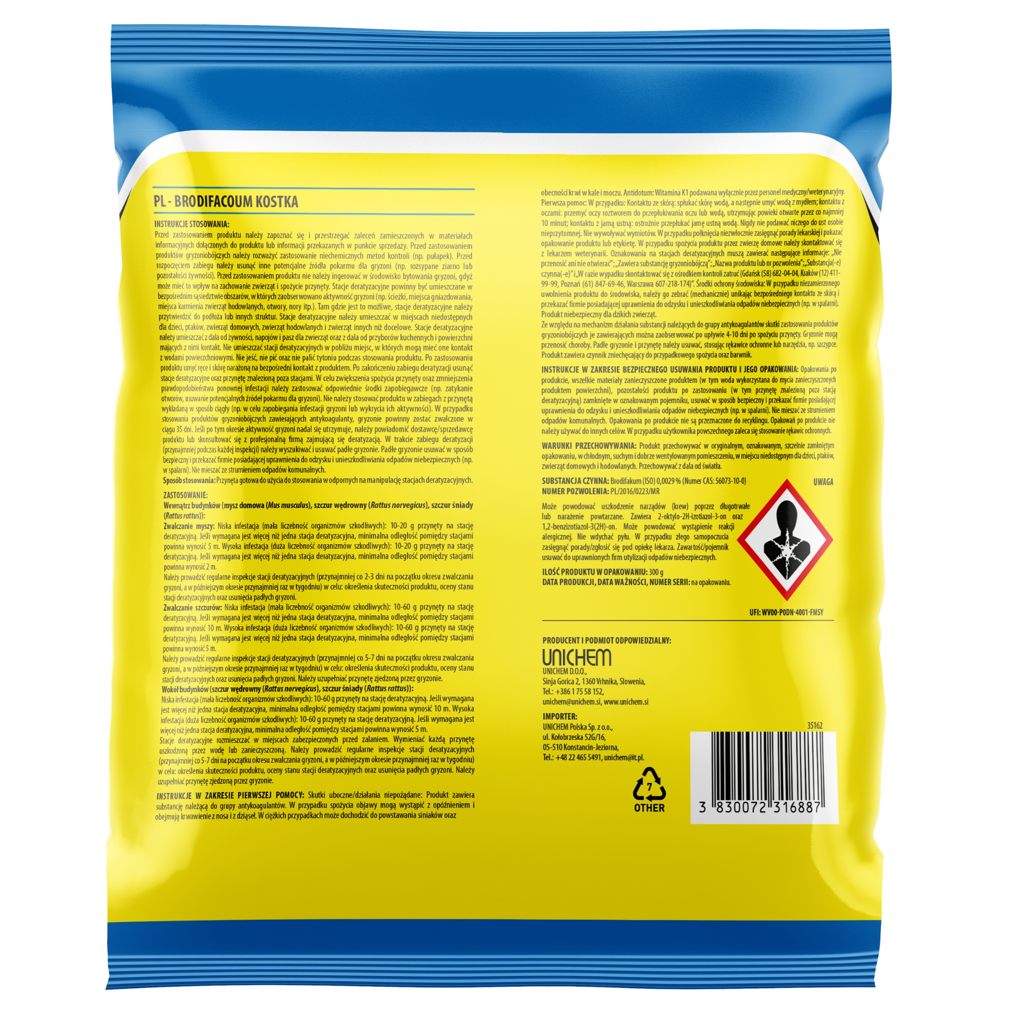 Ratimor Brodifacoum to profesjonalny środek przeznaczony do zwalczania myszy i szczurów. Kostka woskowa o wadze 20 g zawiera substancję czynną brodifacoum, która działa już po jednorazowym spożyciu przez gryzonia. Produkt wyróżnia się wysoką skutecznością, długotrwałym działaniem oraz wygodną formą gotową do użycia.