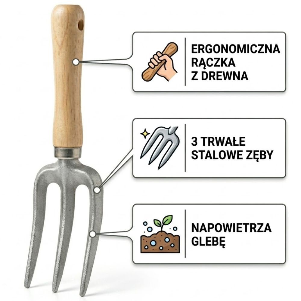 - wielozadaniowość: idealne do spulchniania gleby, usuwania chwastów oraz sadzenia roślin.