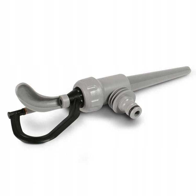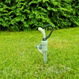 - Stabilna szpilka do wbicia w ziemię zapewniająca stabilność zraszacza